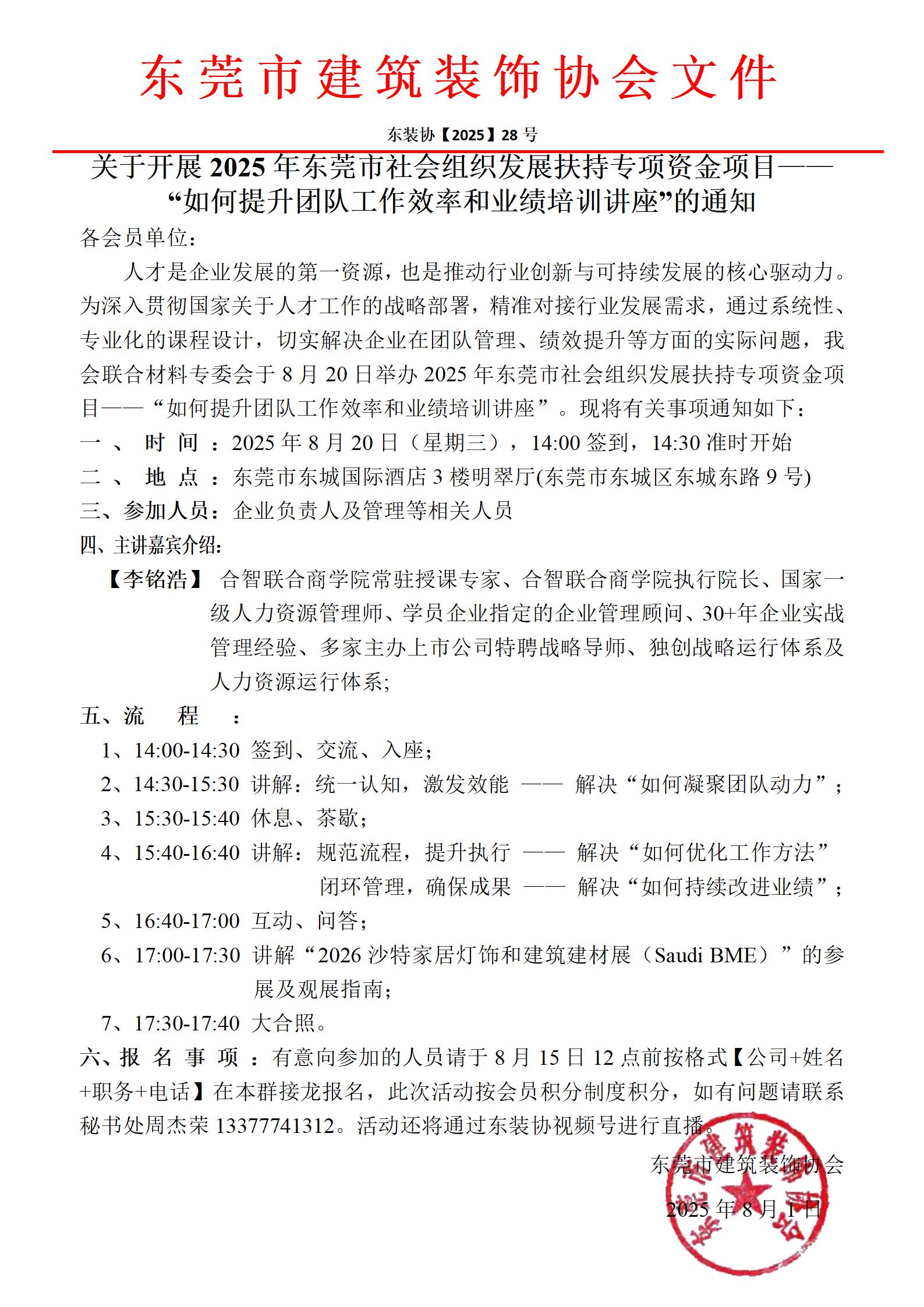 关于开展2025年东莞市社会组织发展扶持专项资金项目-“如何提升团队工作效率和业绩培训讲座”的通知