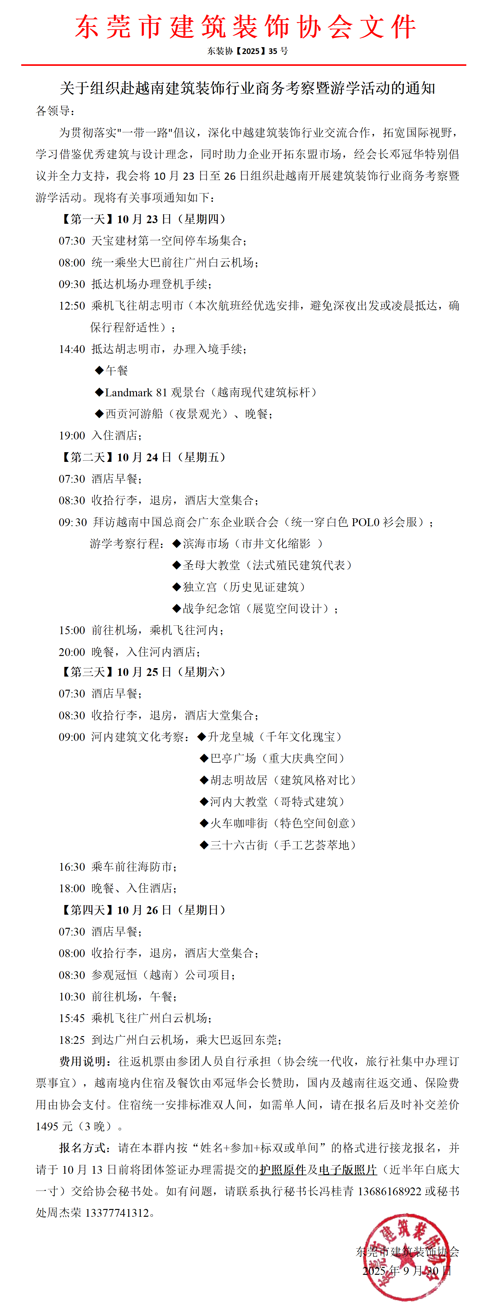 关于组织赴越南建筑装饰行业商务考察暨游学活动的通知