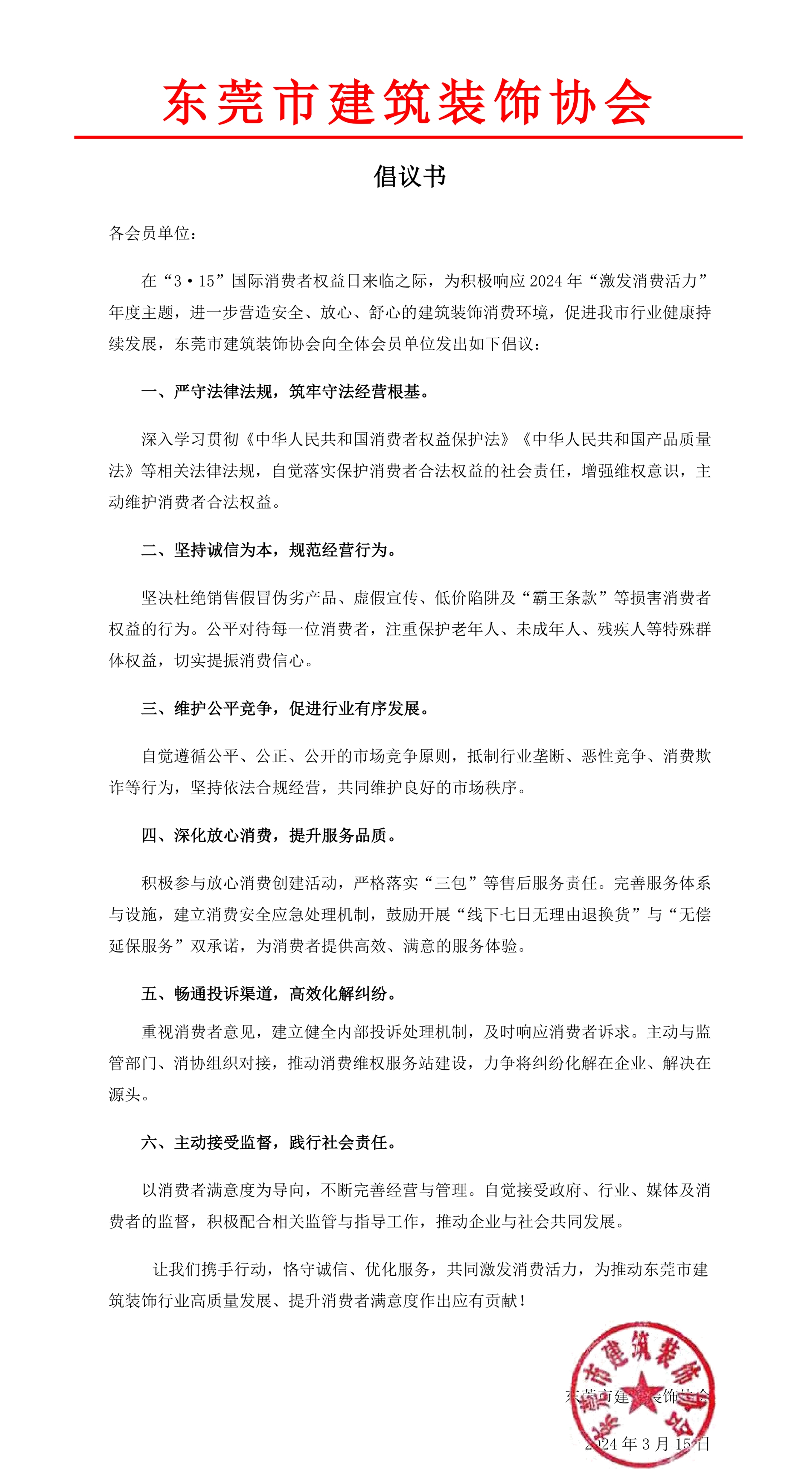 3·15国际消费者权益日倡议书