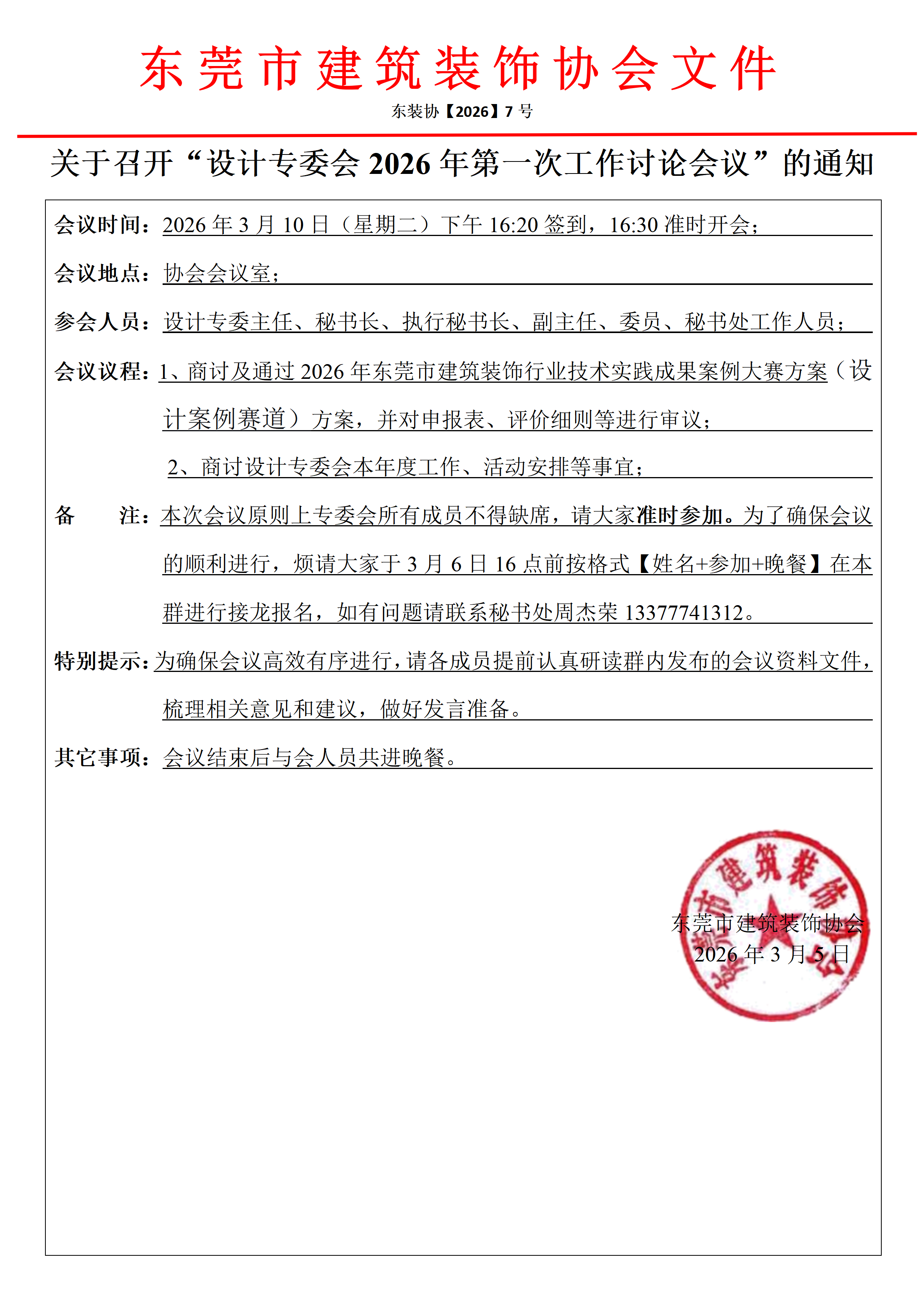 关于召开“设计专委会2026年第一次工作讨论会议”的通知