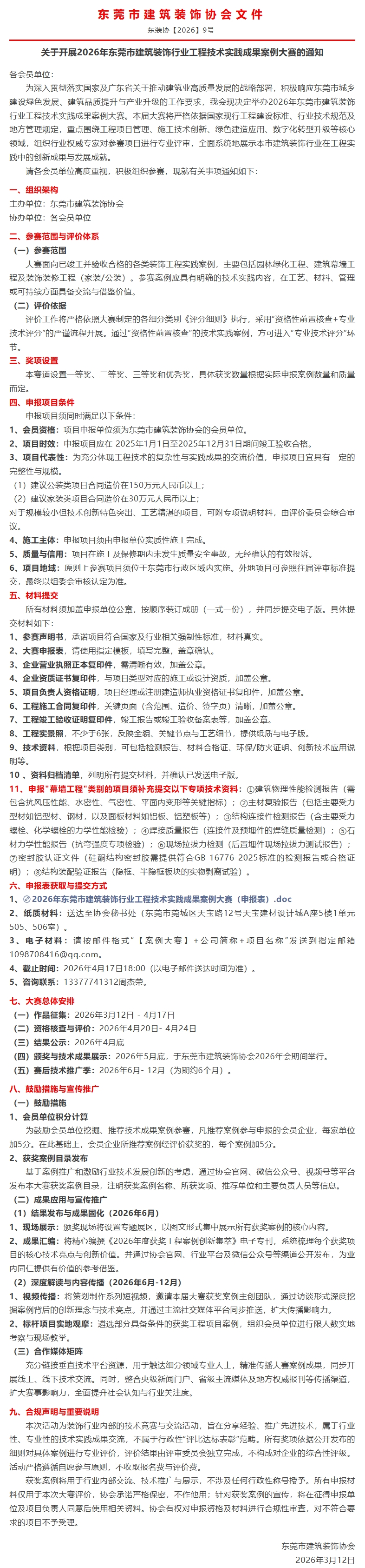 关于开展2026年东莞市建筑装饰行业工程技术实践成果案例大赛的通知