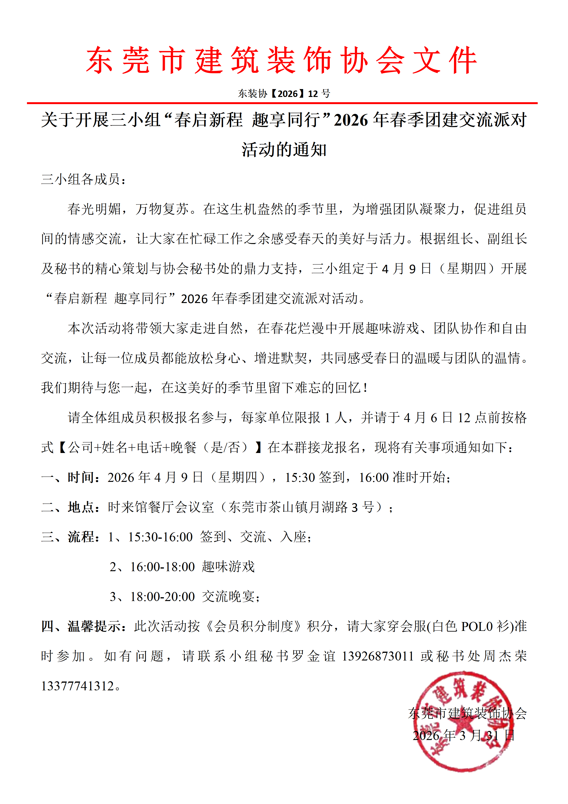 关于开展三小组“春启新程 趣享同行”2026年春季团建交流派对活动的通知