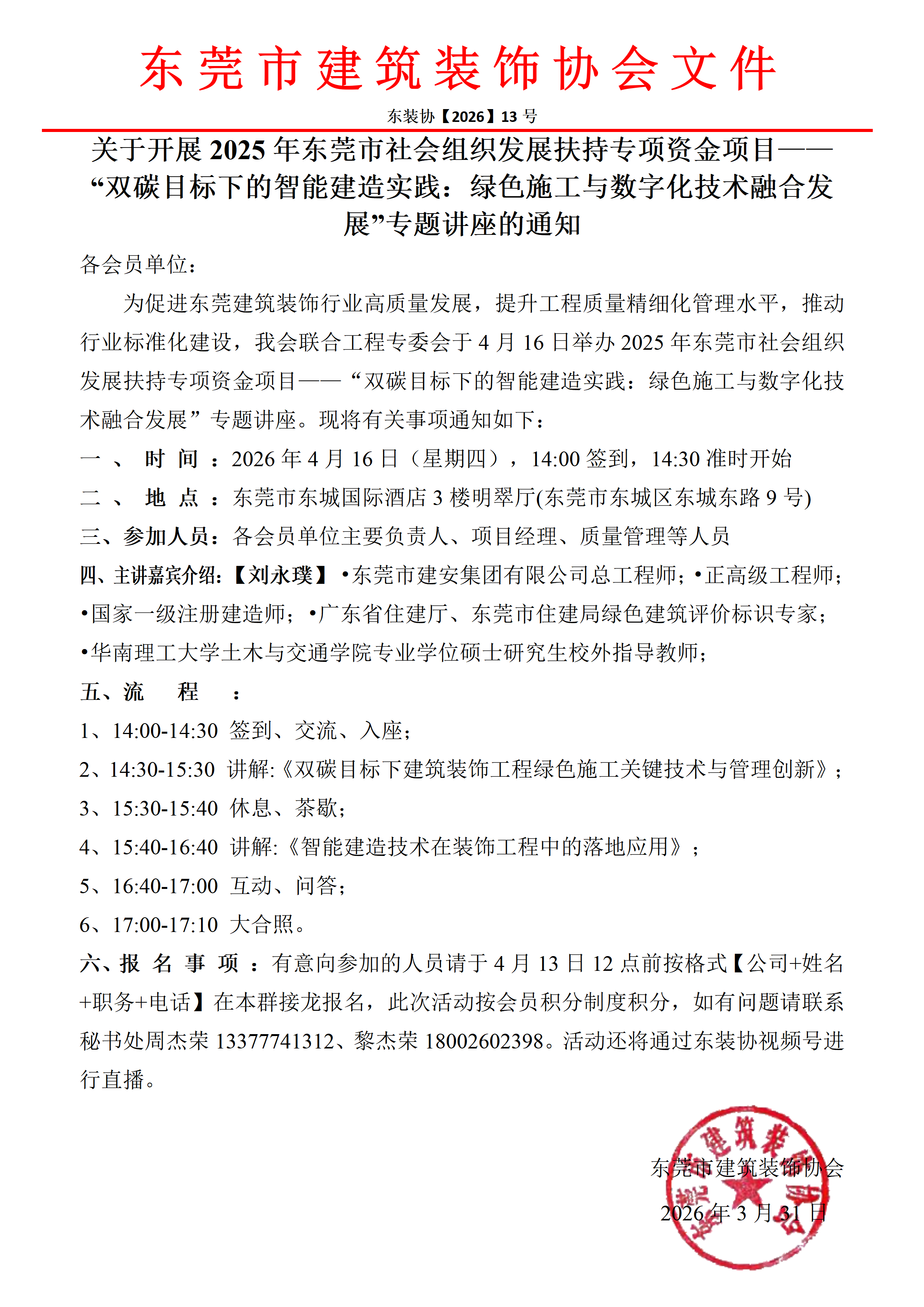 关于开展2025年东莞市社会组织发展扶持专项资金项目——“双碳目标下的智能建造实践”专题讲座的通知