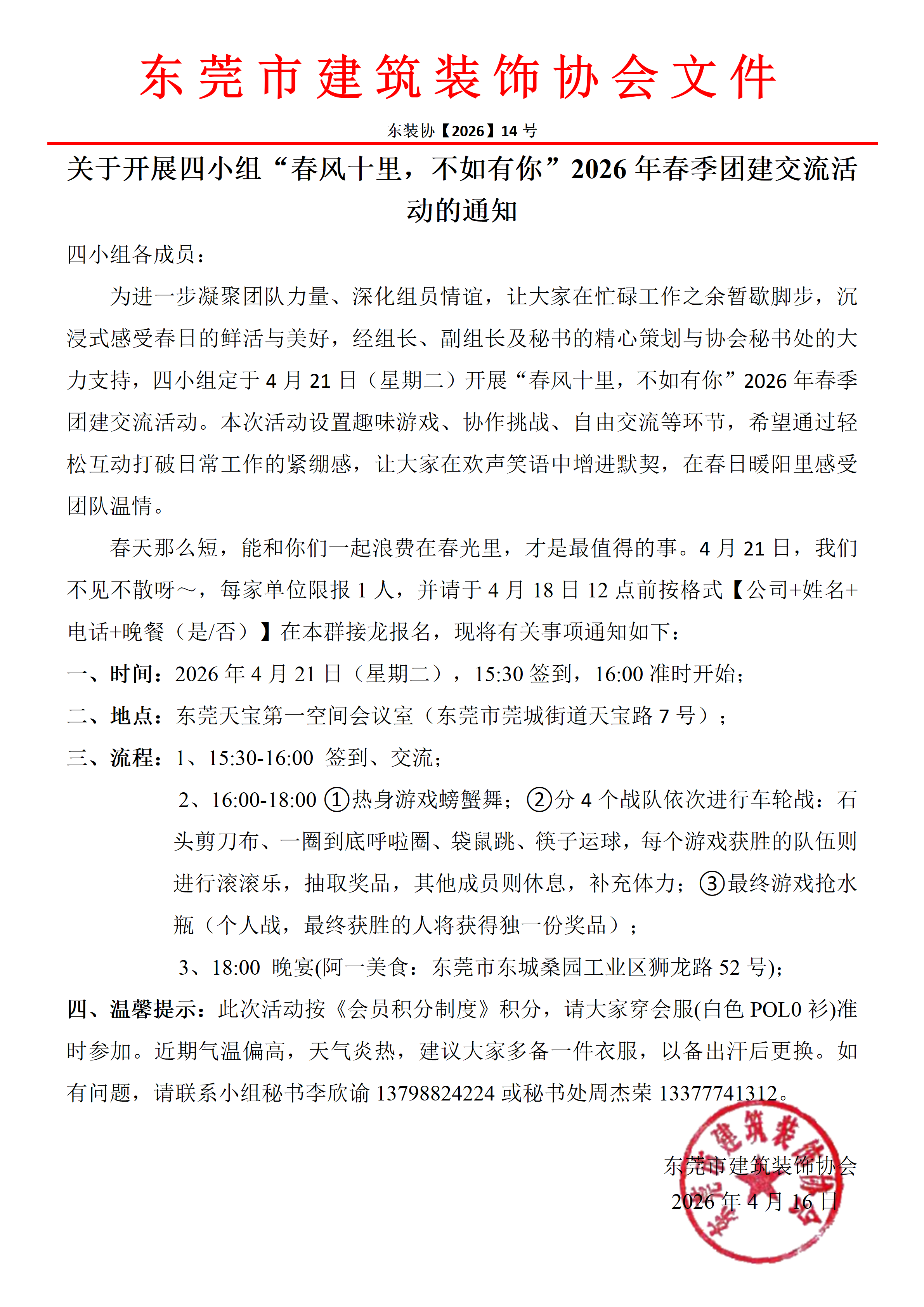 关于开展四小组“春风十里,不如有你”2026年春季团建交流活动的通知