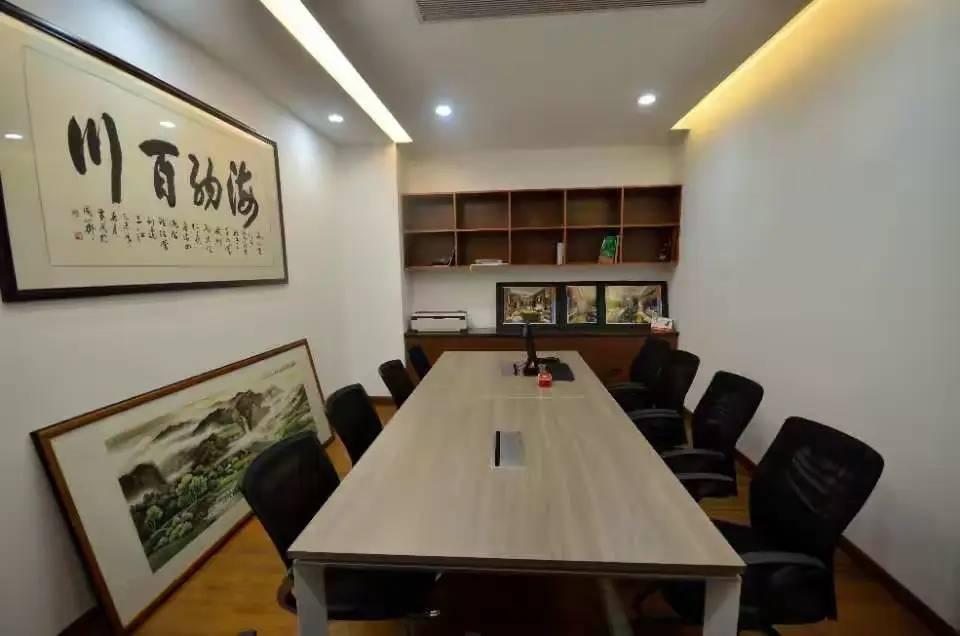 办公室包含多个独立功能区域,满足日常办公需求。设有独立会议室,空间宽敞,配备会议桌椅及字画装饰,适合团队会议使用。另有专门的洽谈室,环境沉稳,便于商务沟通。茶水间设施齐全,为员工提供便利的休息空间。