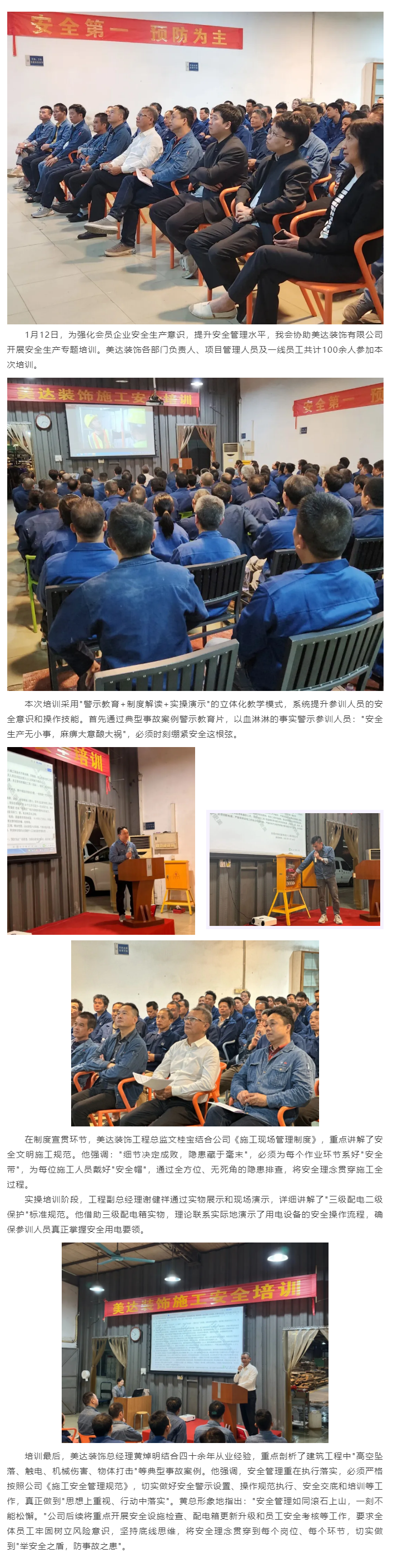 【协会动态】我会成功协办美达装饰施工安全专项培训