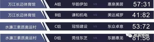 9点“华韵伊加”VS“惠泉美居”、“谦和机电”VS“美达威罗”、“莞佳东芝”VS“东鹏惠龙”,同时开战。